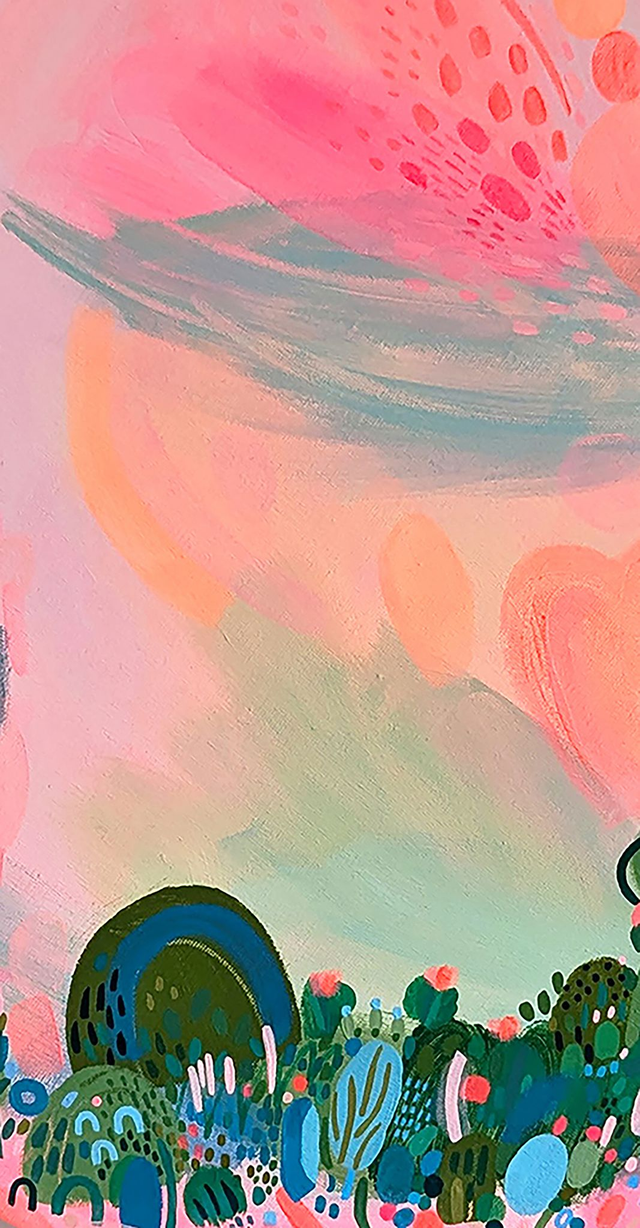 Part of a triptych of paintings, all suggesting imaginary landscapes, incorporating blurry memories of Summer in nature, beautiful views and the hazy heat of the afternoon.